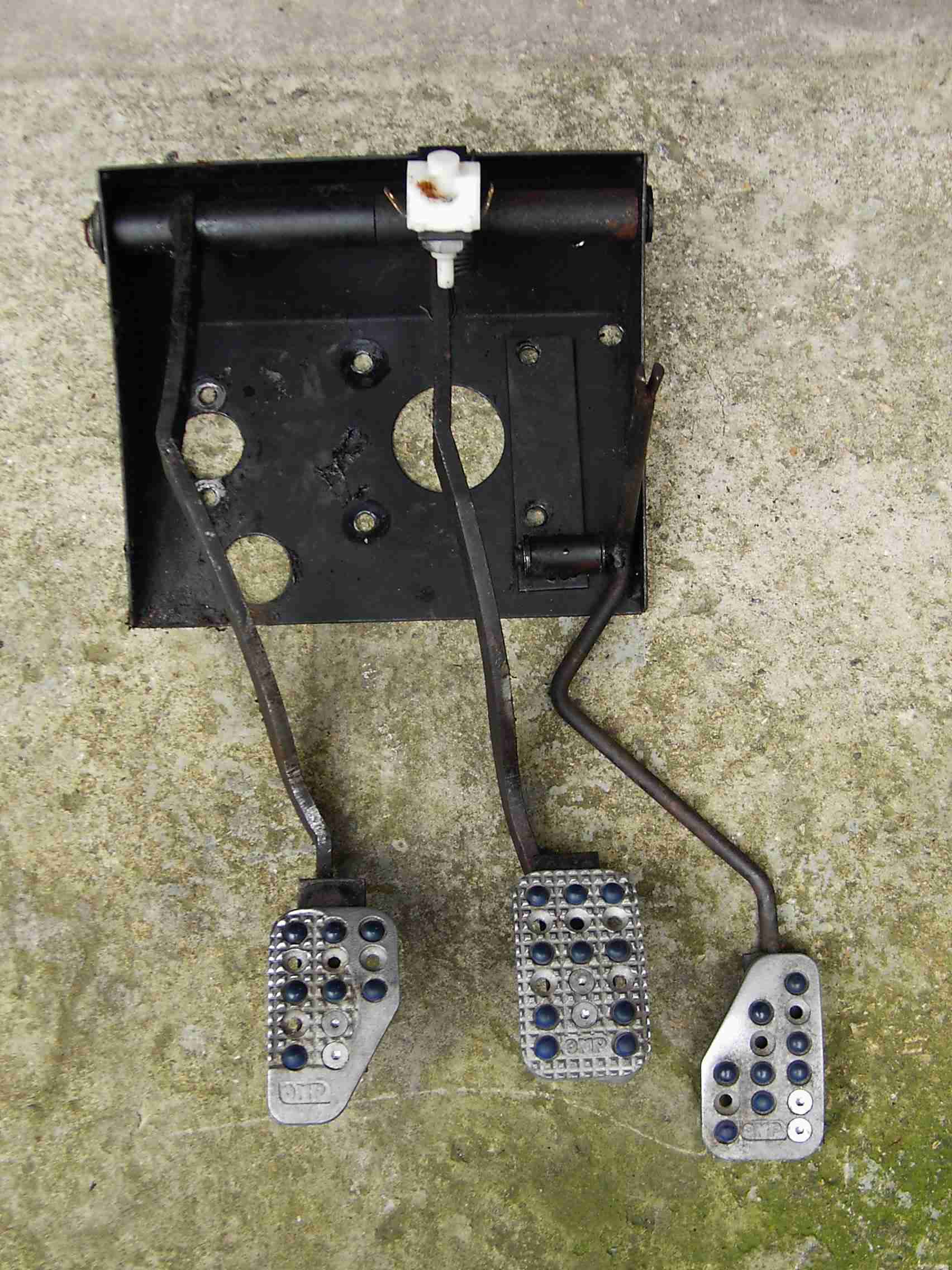 pedals. As an aside, the Tasmin designer, Oliver Winterbottom, mentions in his autobiography 'A Life In Car Design' that the pedal box was 'TR7-based'. By chance I found somepne selling a TR7 pedal box on eBay and whilst they're similar, the TVR version is simpler in that it doesn't have a rolled edge surrounding it. I guess TVR probably just used the pedals and shaft and kept the sheet metalwork simpler - the Triumph version was probably banged out by the thousand on press-tooling which allows fancier shapes. Or perhaps TVR cut off the bits they didn't need...