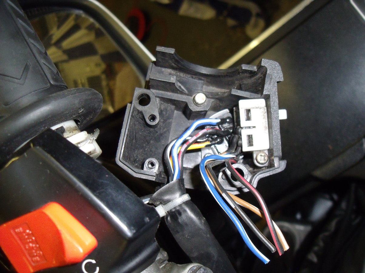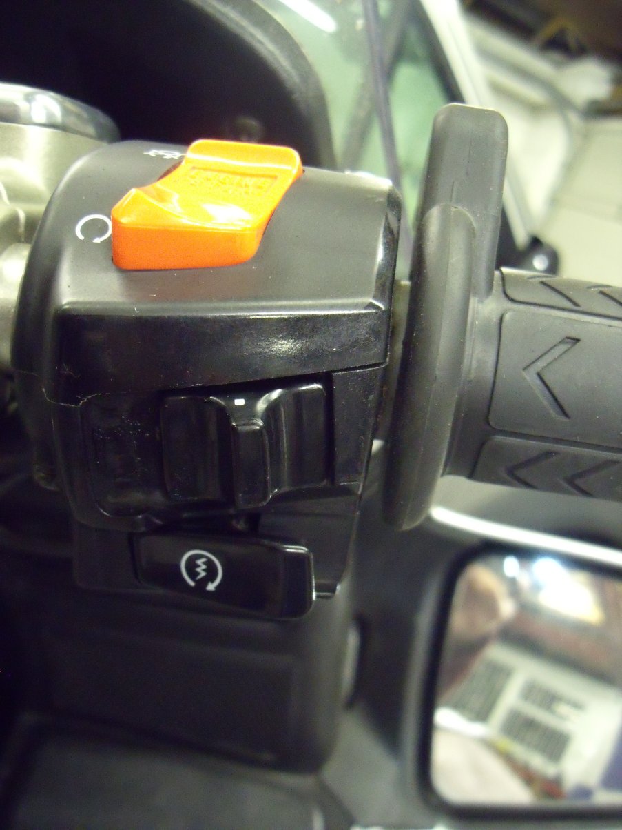 I wanted to reinstate the lights switch on my ’05 bike, largely because if I’m working on the bike’s electrics I don’t want the headlamps flattening the battery. Yes, I could pull fuses, but surely a switch is easier? ;o) The other issue is that the ST’s onboard computer and the alarm system between them will drain the battery in a very short time, so being able to leave the lights off when cranking (or bump-starting!) with a sluggish battery is a bonus. To begin with, I needed the switchgear from a pre-’04 bike.