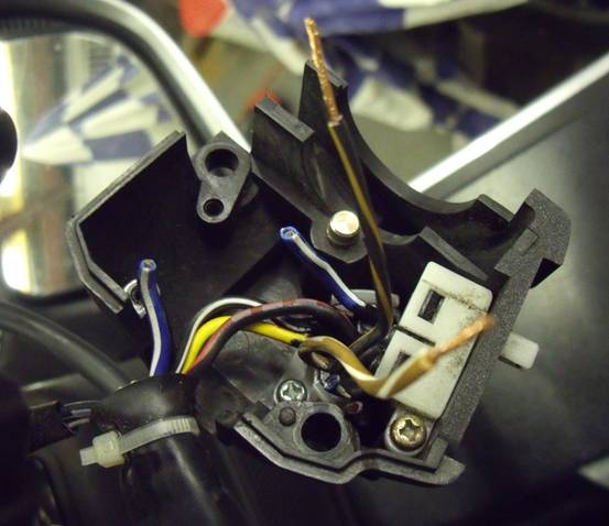 My original plan was to simply swap the complete units over, but the ex-Blackbird top half was obviously  in ‘used’ condition. Instead, I opted to retain the (still shiny!) top half of the ST unit and fit just the bottom half of the ‘Bird’s housing that actually carries the light switch. The only (very) slight issue was that there are no markings on the post-’04 top half to show the lighting positions but hell, if you can’t work out what the lights switch does you aren’t safe on a motorcycle. I duly snipped the lights switch from the ‘Bird’s loom and swapped the starter switch from the ST’s bottom housing to the CBR’s: