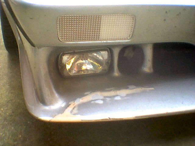 Since the above photo also shows the driving lamp, I'd be as well tell you that it's a Cibie 'Airport 35' series lamp. TVR fitted the 'driving' version rather than the 'fog' lamp which are much more commonly-available (the 'drive' being more long-throw where the 'fog' has the short-range flat-top beam for picking out kerbs. If you're brave enough to hunt for them in France you want the 'longue-portee' version and not the 'anti-brouillard'). But back to the indicators... the light units on my car weren't in the best of health when the offside one was smashed by a flying stone (in about 2002!). Unwilling to pay Renault's silly prices and wait several weeks for delivery, and reasoning that even new units would corrode eventually, I decided to fabricate my own. I laid-up a few layers of mat and resin in the recess of the front bumper. Lampholders were obtained for a couple of pounds from Vehicle Wiring Products and the new 'base' drilled to accept them. Further resin bonded the lampholders and some 3mm nuts in, a partition was added from an offcut of plastic... which left the lens. I played with a couple of ideas before settling on the solution you see: a lens cut from the diffuser of an industrial light fitting ( I guess a domestic fluorescent would do as well!), an 'inner' diffuser in white plastic which I later opted to leave out for increased brightness, and to get the requisite amber colour I used those bulbs with orange coating that modern cars have. Ironically, they were the most expensive part of the job.The new bases were screwed into the bumper, stainless domed-head hex screws and a bead of silicon sealant used to fix the lenses and keep the rain out respectively. In true TVR fashion, I had to cut two different shaped lenses as the bumper recesses are slightly different. People with beards and anoraks would no doubt pontificate over the lack of 'E' markings on the lens; my riposte would be, if it's acceptable as a domestic light fitting, with all the health and safety nonsense that entails, what's the problem?