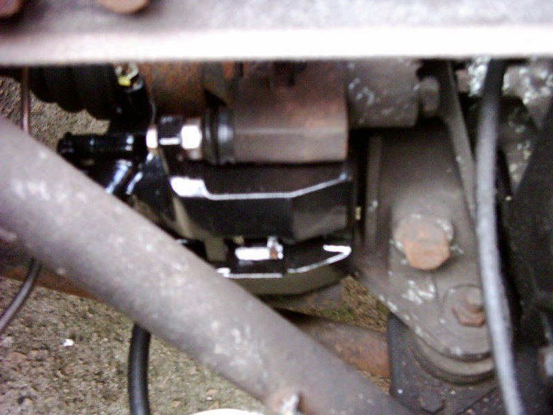 Above picture shows the rear calipers after I'd overhauled them. You can see the new short link pipes in CuNiFe and the stainless braided hoses. I reused the anti-rattle shims, that's the rusty bits of tin you can see ;)