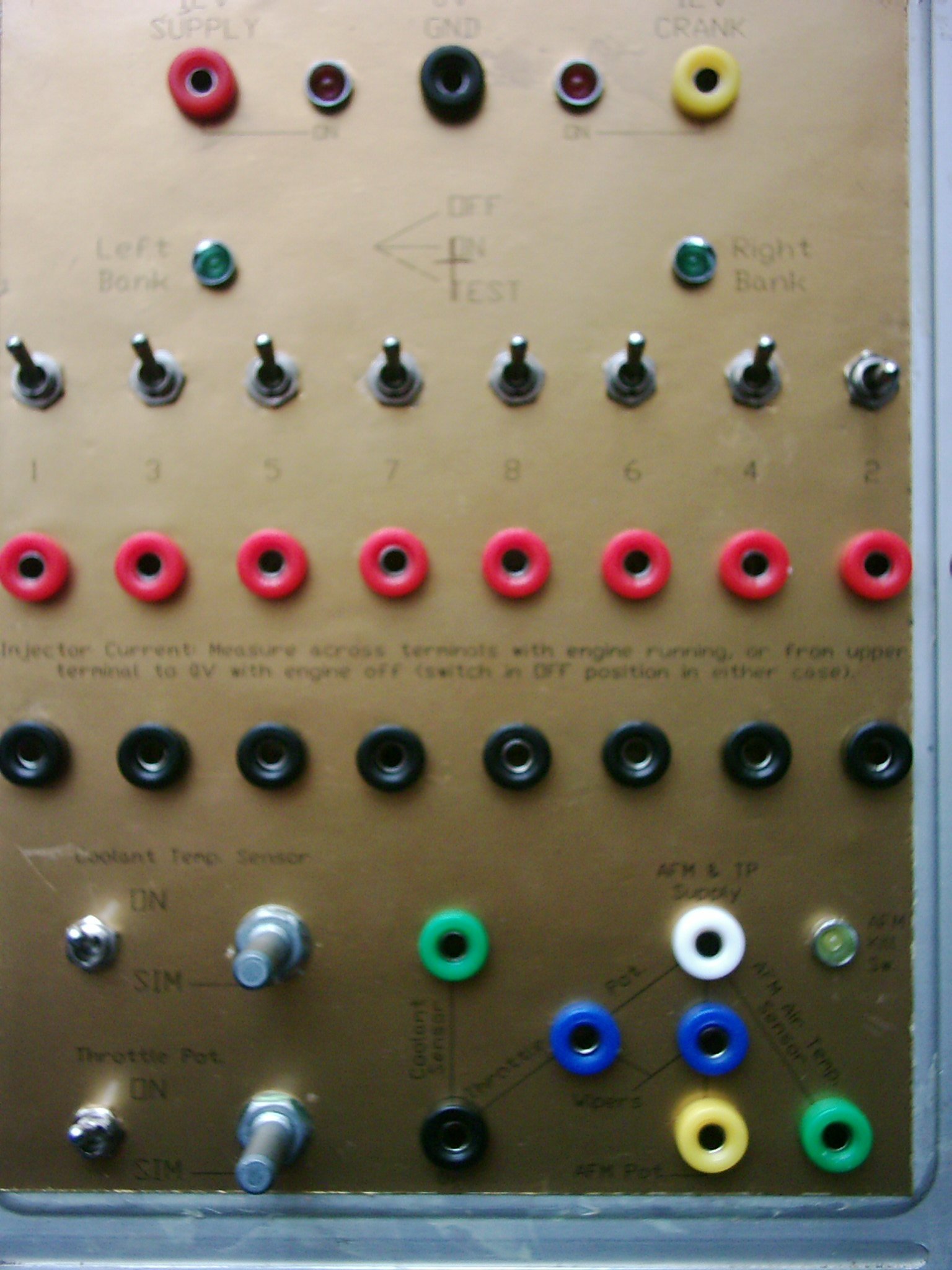 Switches and potentiometers to allow simulation of the throttle pot. and coolant temperature sensor where these are suspect;