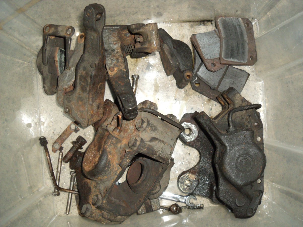 As you can see above, some of the handbrake pads hadn't survived. I removed them all as new ones were on order: