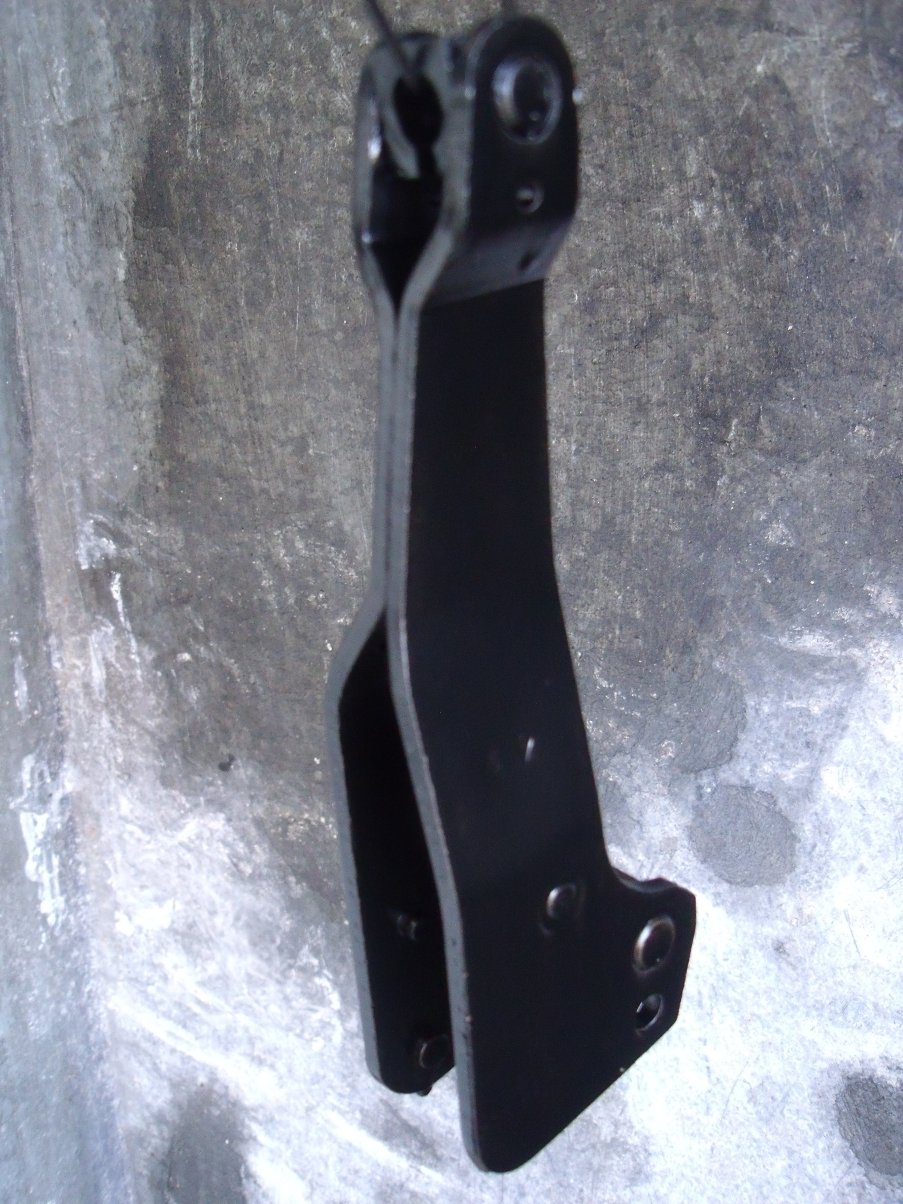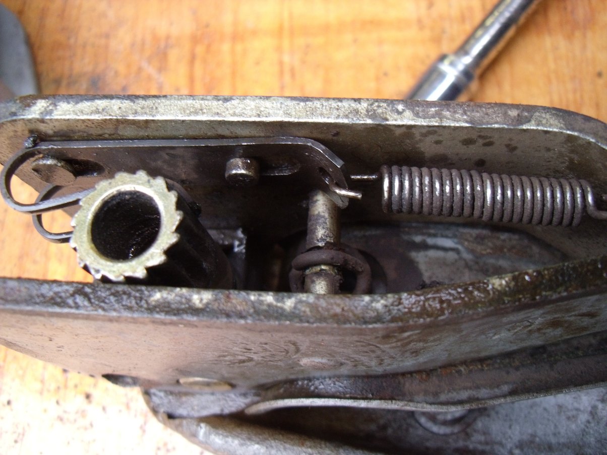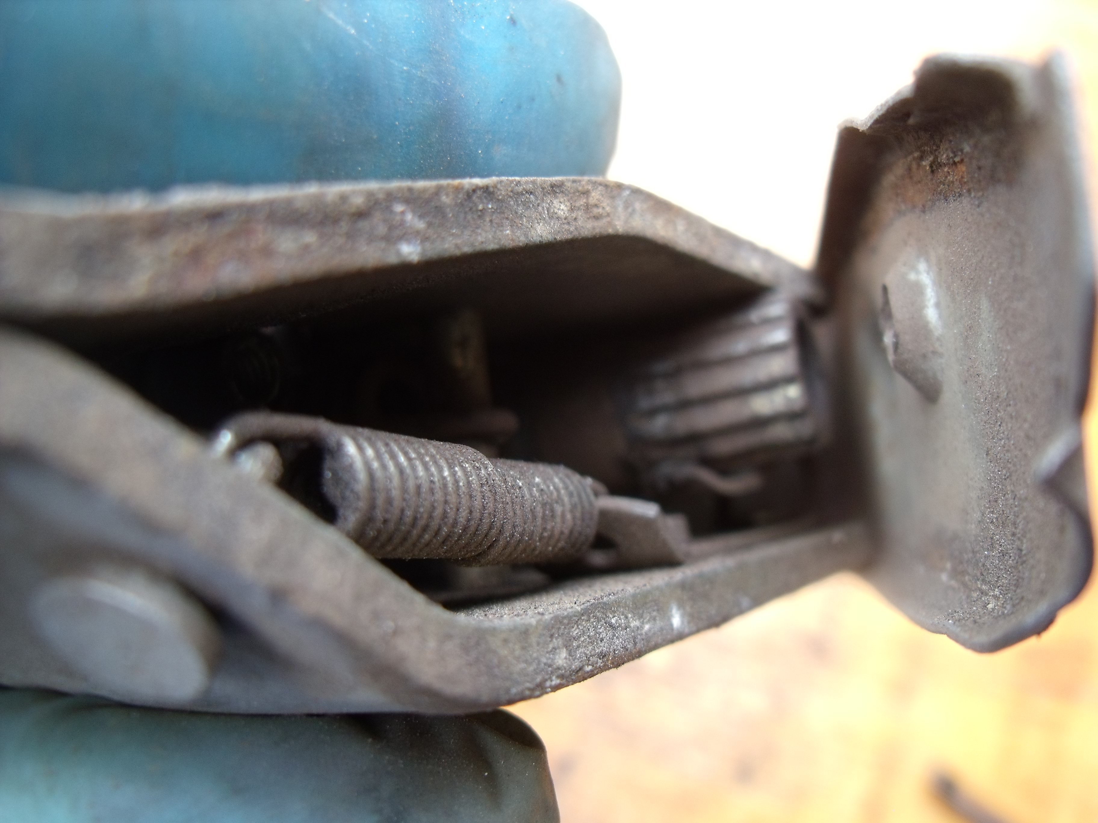 First thing to do, then, was to extract the calipers. Unlike most modern cars where the hydraulic rear caliper doubles as the handbrake, this Girling design is a two-part system. The main, hydraulic caliper responds to the footbrake pedal as usual, but the handbrake function is provided by a separate pair of cable-operated calipers mounted on top of the hydraulic units. The whole device is so bulky it looked unlikely that either side would simply drop out through the chassis tubes so I opted to remove the handbrake calipers first. Simple enough: disconnect the cable, bend back the locking tabs, extract 4 pivot bolts and... needless to say it wasn't that simple as the pivots were largely gripped by corrosion in the castings. With the units finally removed, I snipped the lockwires on the main caliper bolts and set to work with a 5/8" spanner. The lower bolts are, relatively speaking, easy to get at, but the top ones are out of sight and obstructed by hydraulic pipes, chassis tubes etc. and take some dexterity to extract. You can't actually remove them as the differential casting is in the way; you undo them fully and then, once you've disconnected the hydraulic lines (or, as I had to, clipped them with cutters as the unions were seized-in) "simply" pop the calipers off and out through the chassis rails (read: wriggle and squirm until free!). I found the easiest access for both was to the left of the car.