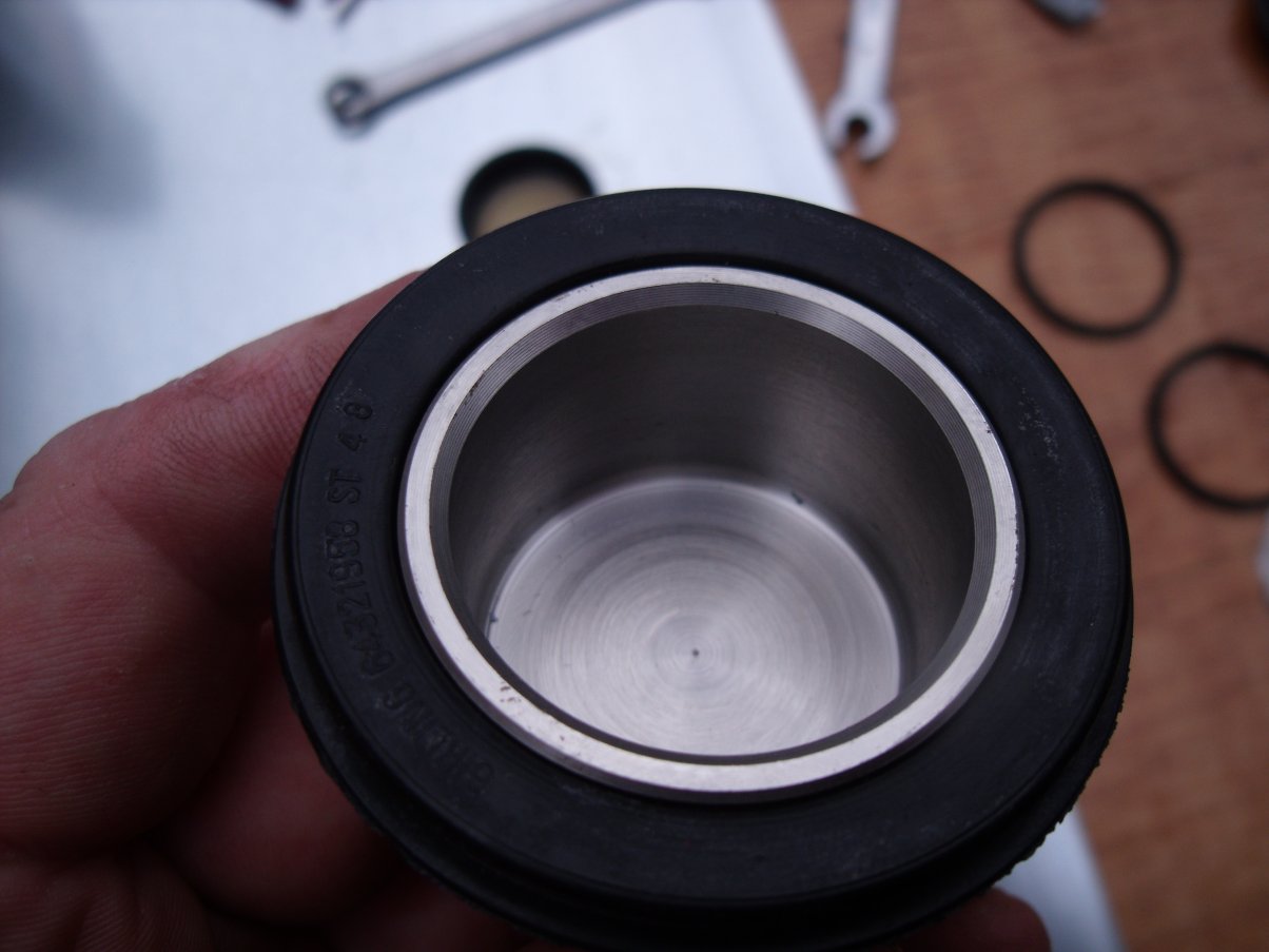 Next, the new stainless steel pistons were wetted and inserted into the cylinders:
